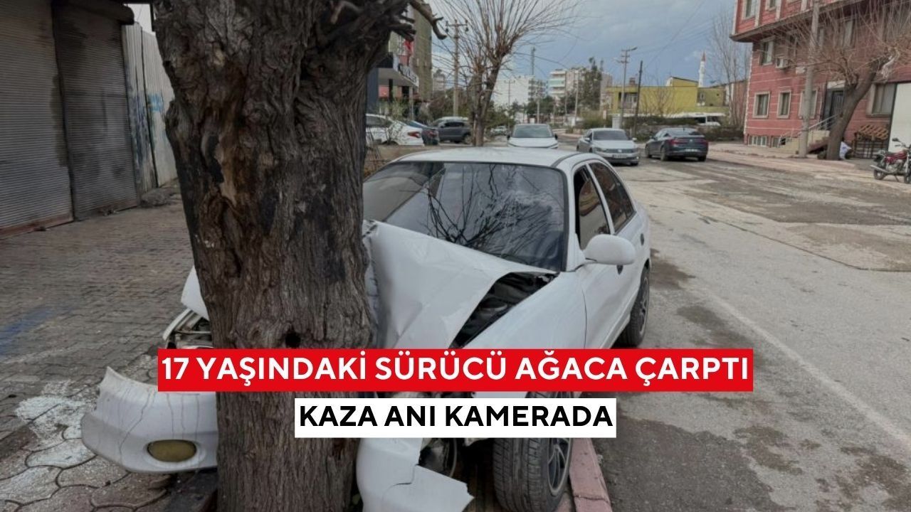 Hatay'da 17 yaşındaki gencin kullandığı otomobil, kontrolden çıkarak kaldırımdaki ağaca çarptı. Otomobilin kontrolden çıktığı anlar güvenlik kamerasına yansırken, kazada sürücü yaralandı.
