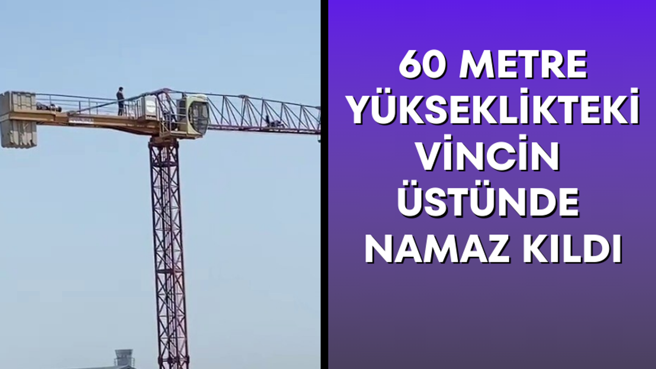 60 metre yükseklikteki vincin üstünde namaz kıldı