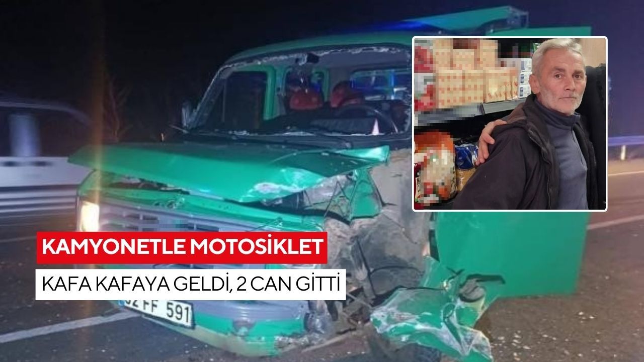 Çift taraflı meydana gelen kazada motosiklet sürücüsü İmdat Tuzcu ile motosiklette yolcu olarak bulunan Engin Tuzcu (57) olay yerinde hayatını kaybetti.