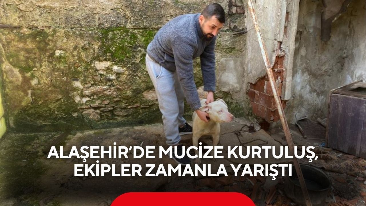 Manisa'nın Alaşehir ilçesinde üzeri kapalı inşaat temeline düşen köpek, itfaiye ekiplerinin başarılı operasyonuyla kurtarıldı.