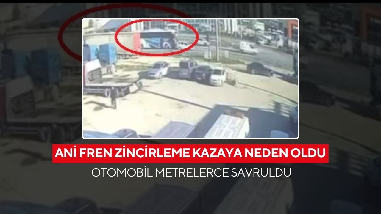 Şoförün yaptığı ani fren yeterli olmayınca otobüs, önündeki araca çarptı. Çarpmanın etkisiyle otomobil metrelerce öne savruldu. Yaşananlar çevredeki güvenlik kameralarına saniye saniye yansıdı.
