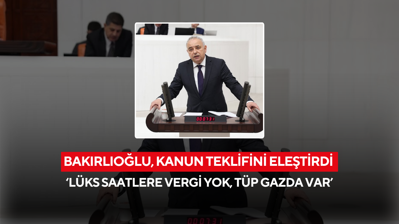 Bakırlıoğlu, Meclis’e sundukları bir önergeyle 50 bin liranın üzerindeki lüks saatlerden ÖTV alınmasını istediklerini belirterek, “Bu Meclis’te milyonluk saat takanlar var ama o saatlerde vergi yok. Tüp gazda, mazotta, buzdolabında vergi var ama lüks saatlerde yok. Bu adaletsizliktir” dedi.