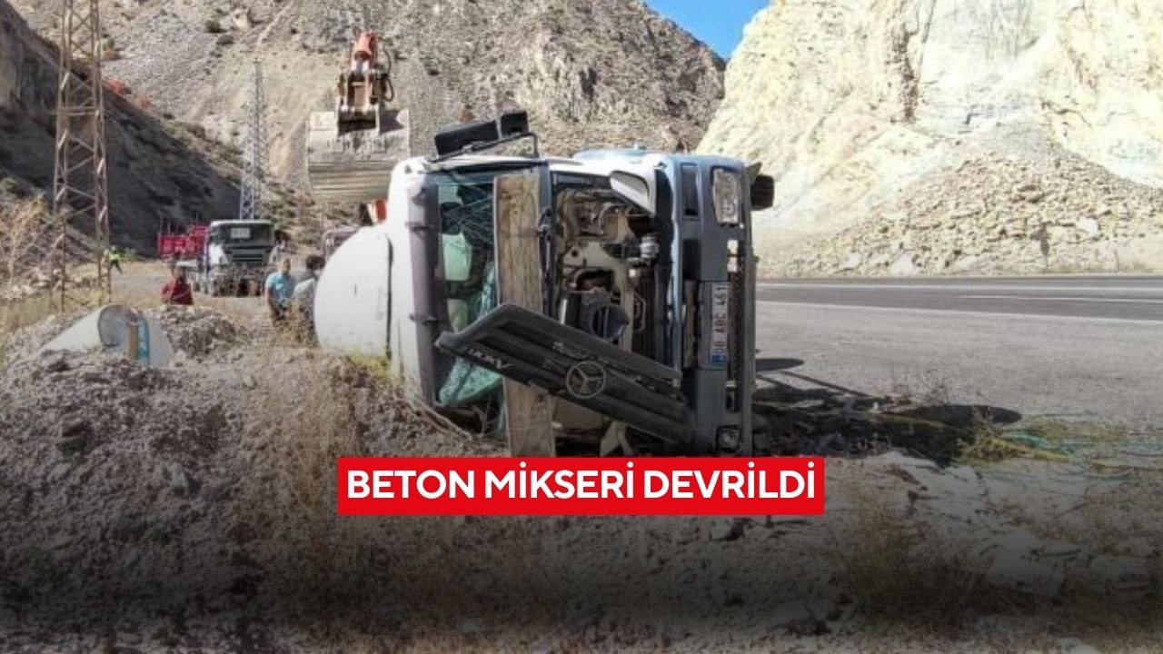 Erzurum yönüne ilerleyen 08 ABC 461 plakalı beton mikseri, virajı alamayarak sürücüsünün kontrolünden çıktı. Araç, Tortum Çayı kıyısındaki toprak birikintisine çarpıp devrildi.