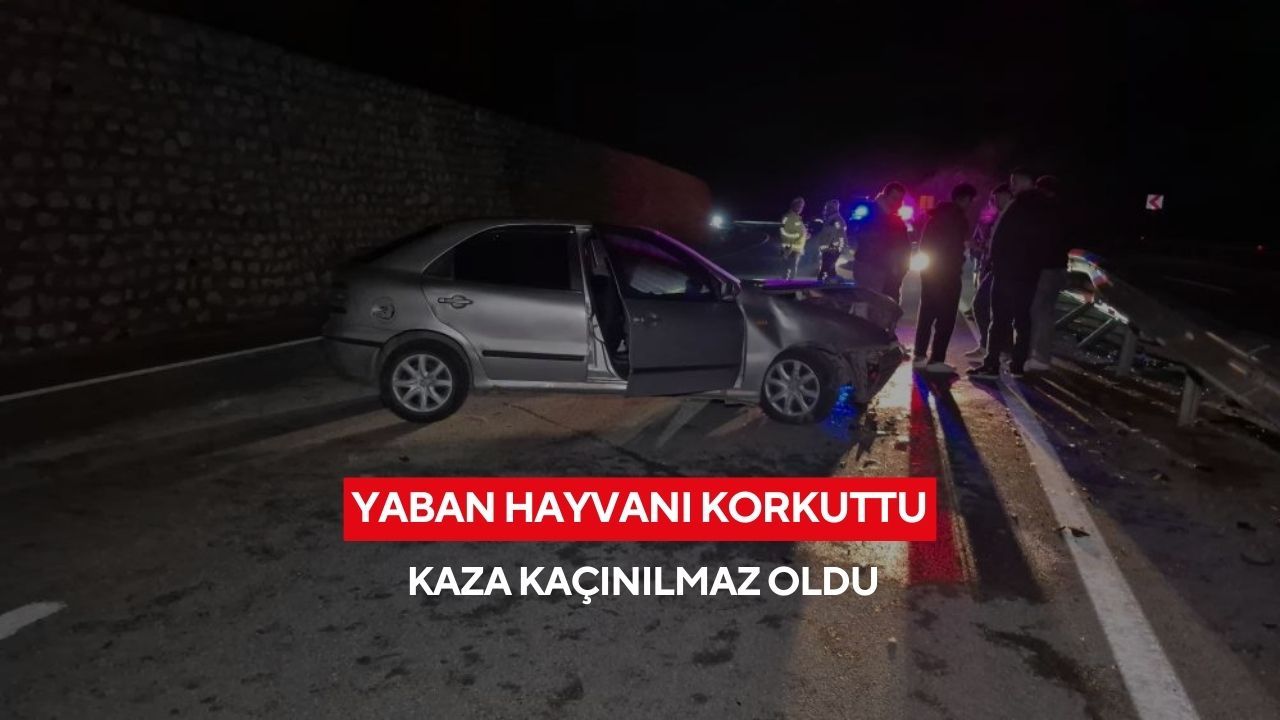 Bartın-Amasra karayoluna çıkan yaban hayvanı kazaya neden oldu. Bariyerlere çarpan otomobilde bulunan 4 kişi yaralandı.