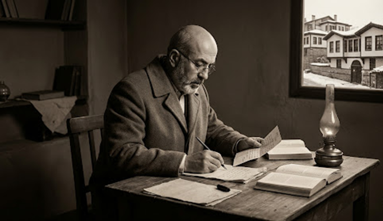 Mehmet Akif, Taceddin Dergahı'nda İstiklal Marşı'nı Kaleme Alırken.