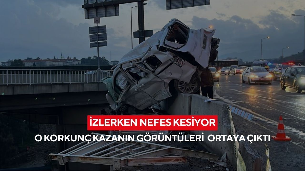 Kaza, saat 17.30'da Homeros Bulvarı'nda meydana geldi. Edinilen bilgiye göre, Konak istikametine seyir halinde olan 42 AFV 856 plakalı iş makinesi yüklü kamyonun frenleri boşaldı. Sürücüsünün kontrolünden çıkan kamyon, önünde seyreden 35 BDK 20 plakalı otomobile arkadan çarptı. Çarpmanın şiddetiyle savrulan otomobil, yol kenarındaki bariyerleri kırarak köprüde asılı kaldı.
