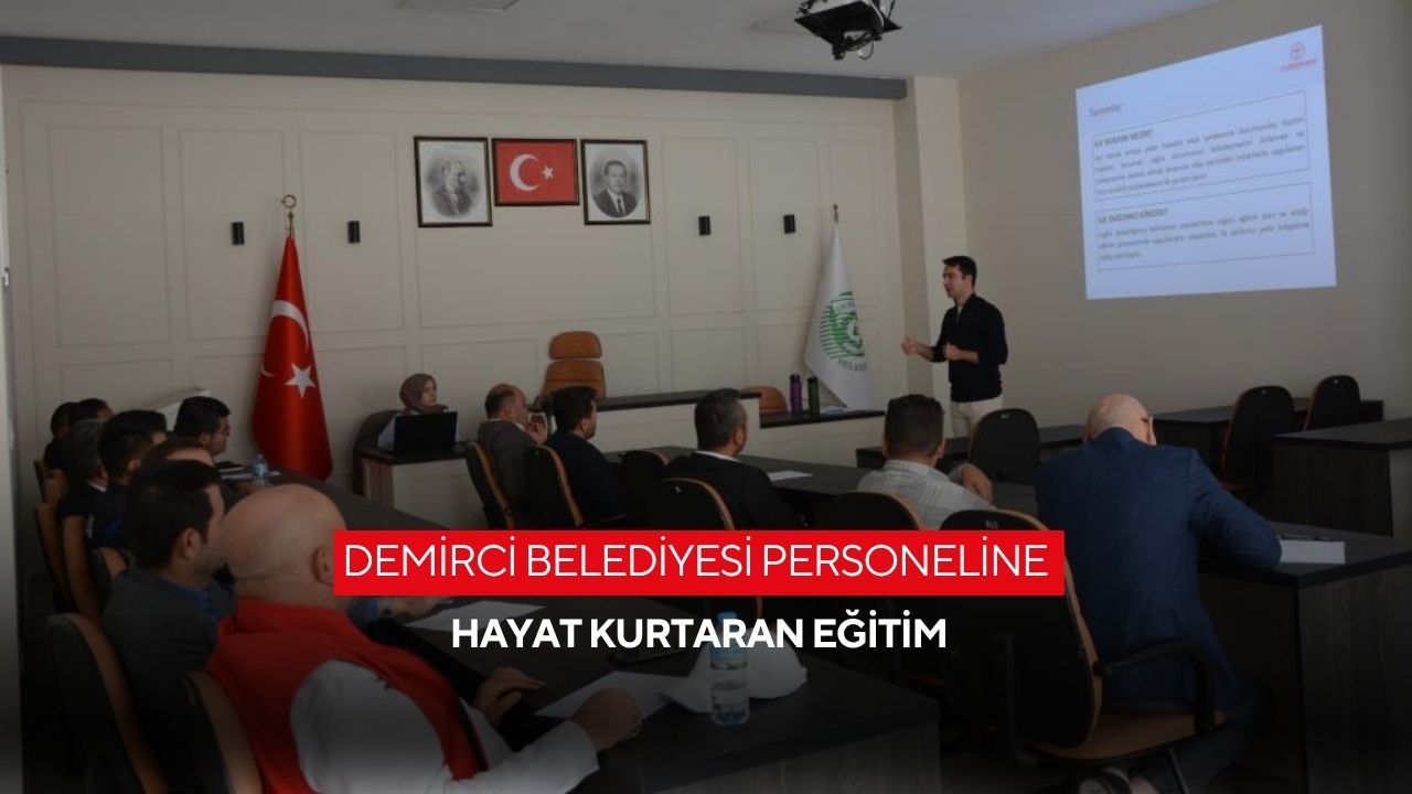 Demirci Belediye Meclis Salonunda gerçekleştirilen eğitimlerde, Manisa İl Sağlık Müdürlüğü’nün görevlendirdiği ilk yardım eğitmenleri Yağmur Akbulut ve Şuayp Akbulut görev aldı.