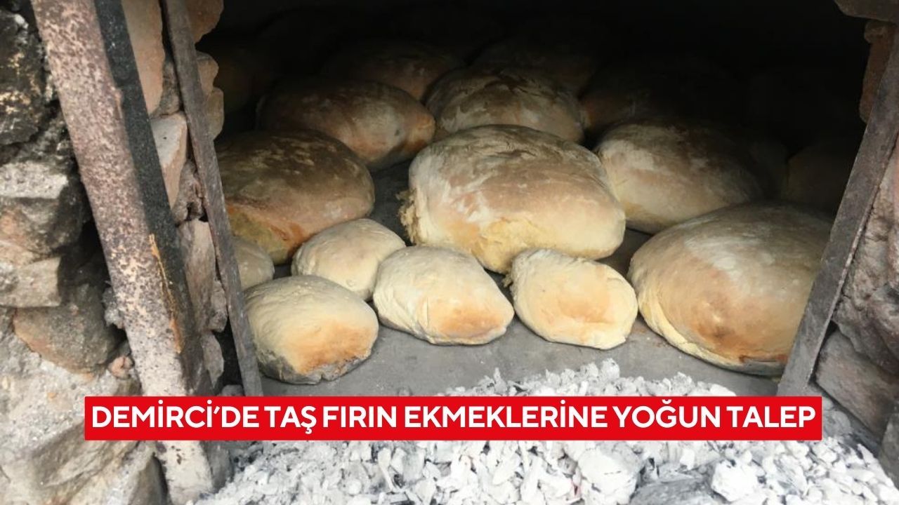 Demirci’ye bağlı Kızılca Mahallesi’nde, bölgede yetiştirilen buğdaylardan elde edilen unlarla hazırlanan hamurlar, hamur makinesinde yoğrulduktan sonra tek tek şekillendiriliyor. Hazırlanan hamurlar, meşe odunu ile yakılan taş fırınlara sürülerek yaklaşık 3 saat boyunca pişiriliyor.