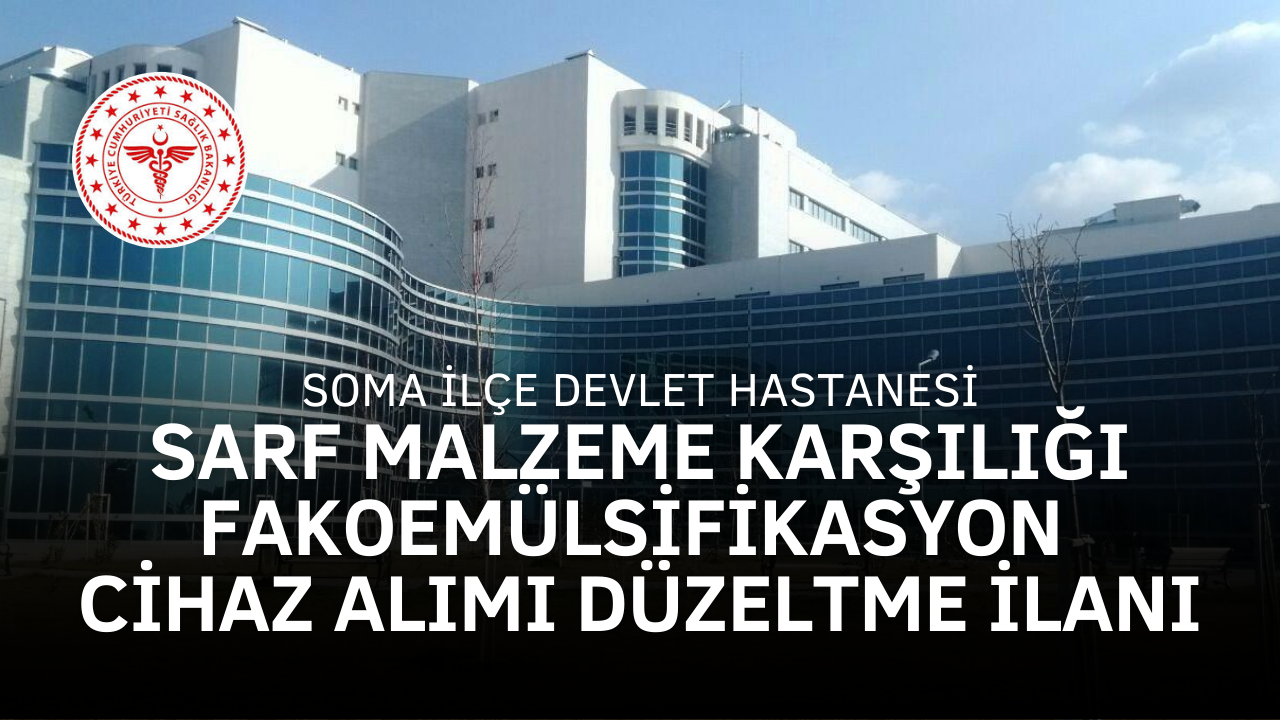 16.01.2026 Tarihinde Soma Kurtuluş Gazetesinde ve Salihli www.sektorgazetesi.com.tr haber sitesinde yayımlanan 2026-69374 SARF MALZEME KARŞILIĞI FAKOEMÜLSİFİKASYON CİHAZ ALIMI 0238248 nolu ilanımızda ihale tarihi sehven yanlış yazılmıştır. Düzeltme ilanına gidilmiştir.