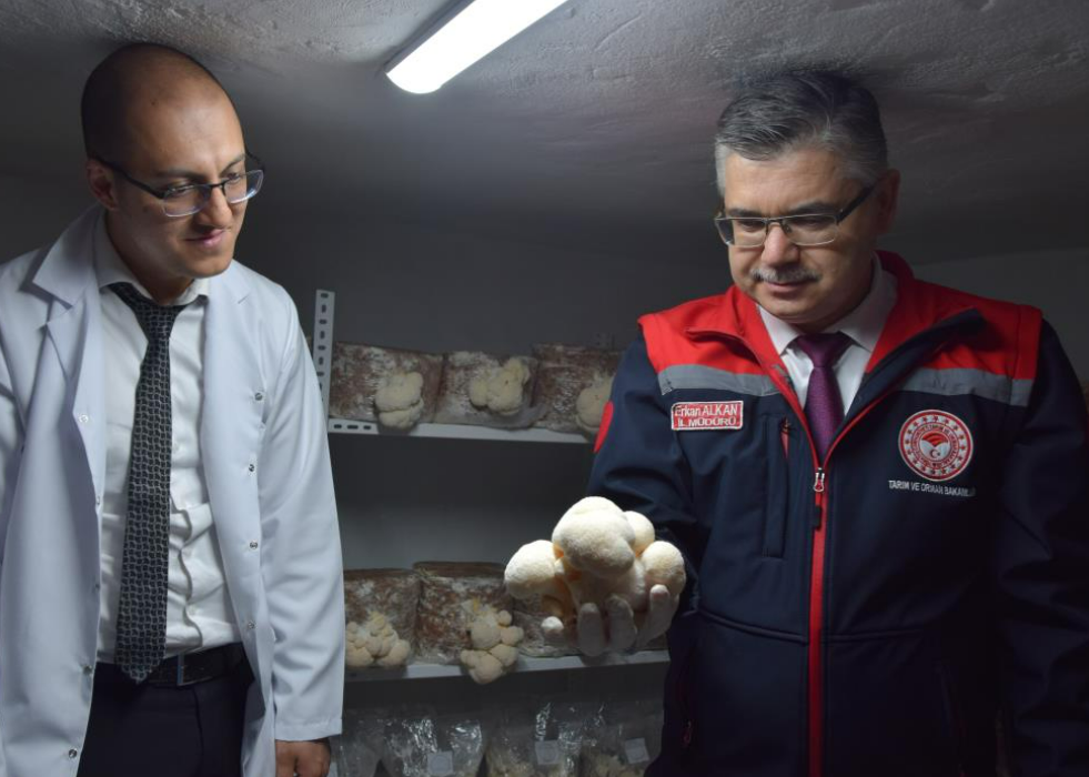 İbrahim Burak Örs'ün üretim alanını ziyaret eden Balıkesir İl Tarım ve Orman Müdürü Erkan Alkan, Balıkesir İl Tarım ve Orman Müdürlüğü çatısı altında 800 kişiye 10 farklı mantar çeşidinin eğitiminin verildiğini ifade etti. Müdür Erkan Alkan, "Balıkesir İl Tarım ve Orman Müdürlüğü olarak yüzde 60'ı kadınlardan oluşan 800 kişiye Balıkesir Büyükşehir Belediye Başkanlığımız Halk Eğitim Müdürlüğü aracılığı ile mantar eğitim kursları düzenledik. Yaklaşık 2 buçuk aylık eğitim sonucunda başarılı olan üreticilerimize, Büyükşehir Belediye Başkanlığı tarafından kompost verilmektedir ve ayrıca mantar hasadına kadarda il müdürlüğümüz personeli tarafından da teknik destek verilmektedir. Kültür mantarının yanı sıra 100 kişiye tıbbi ve egzotik mantar eğitimi verilmiştir. Bunlar şu an hasadını yapacağımız aslan yelesi mantarı, kırmızı istiridye, reishi, şitaki, hindi kuyruğu mantarı gibi 10 farklı çeşitteki mantar türünün yetiştirilmesi ile ilgili kursiyerlerimize tamamen destek verilmiştir. Burada eğitimde başarılı olan kursiyerlerimize Balıkesir Büyükşehir Belediye Başkanlığımız tarafından kompost ve toprak örsü temin edilmektedir. Böylelikle maddi sermaye olamadan üretime geçmesi sağlanmaktadır kursiyerlerimizin" dedi.