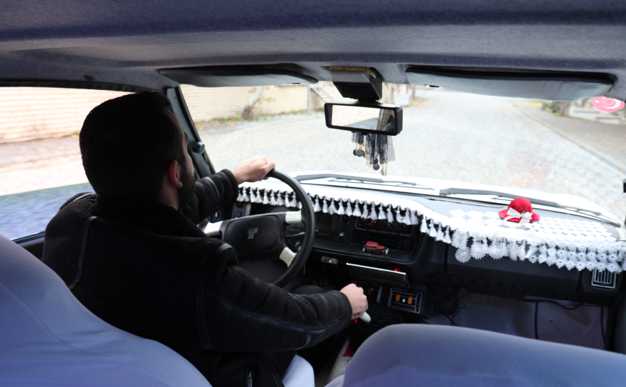 " Şu an gördüğünüz aracın iki senedir sahibiyim ve aracın ikinci sahibiyim. Araç 1980 model ve bir ay sonra 46 yaşına giriyor. Bir ay sonra doğum günü var, onu da kutlayacağız. Aracımıza o kadar değer veriyoruz ki neredeyse aileden biriymiş gibi görüyoruz. Arabaya sadece annem ve kardeşim binebiliyor. Dışarıdaki arkadaşlarım binecekse de ancak galoşla binebilir, o da belki. Arka koltukta galoşlarımızı muhafaza ediyoruz. Bu konuda arkadaşlarım ve ailemle çok sorun yaşıyorum. 'Bu kadar titiz olma' diyorlar ama bilmiyorum. Ben aracımı adeta kız arkadaşım gibi görüyorum"