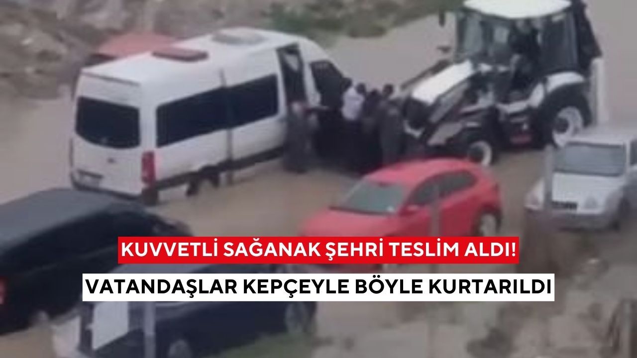 Görüntülere yansıyan olayda, servis aracında bulunan çalışanların iş makinesi yardımıyla kepçe kovasına alınarak suyun olmadığı güvenli bir bölgeye bırakıldığı görüldü.