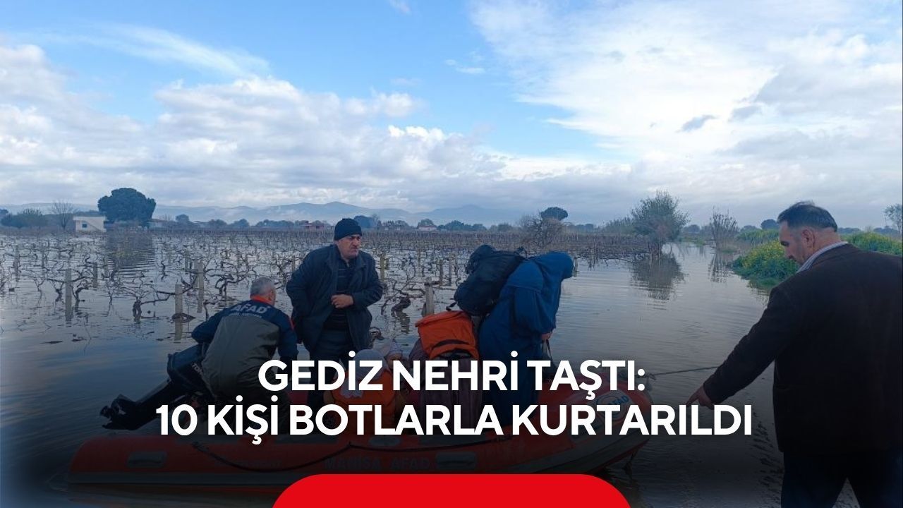 Manisa'da 2 gün boyunca etkili olan sağanak yağışlar nedeniyle Gediz Nehri'nde taşkınlar meydana geldi. Özellikle Yunusemre ve Şehzadeler ilçelerinde bazı tarım arazileri ve yerleşim alanları sular altında kalırken, bölgedeki 10 kişilik bir aile yükselen su seviyesi nedeniyle mahsur kaldı.