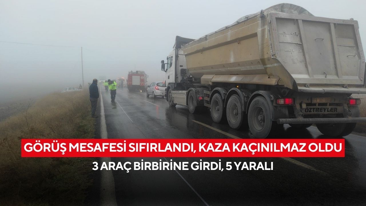 Kaza, İskilip-Çorum karayolu Osmancık yol ayrımı mevkiinde meydan geldi. Edinilen bilgiye göre, yoğun sis sebebiyle görüş mesafesinin düştüğü yolda, 3 araç çarpıştı. Çarpmanın etkisiyle yoldan çıkan otomobil yan yattı.