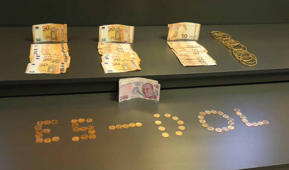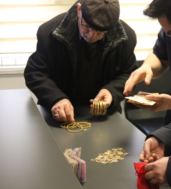 Parayı vermeyi kabul eden Kazım Kınık'ın yaklaşık 5 milyon 200 bin TL değerinde 57 adet Cumhuriyet altını, 12 adet 30 gram bilezik ve 3 bin euro'yu adresinden şüphelilerce teslim alındı. Şüphelilerin adrese gelişi güvenlik kamerasına anbean yansıdı.