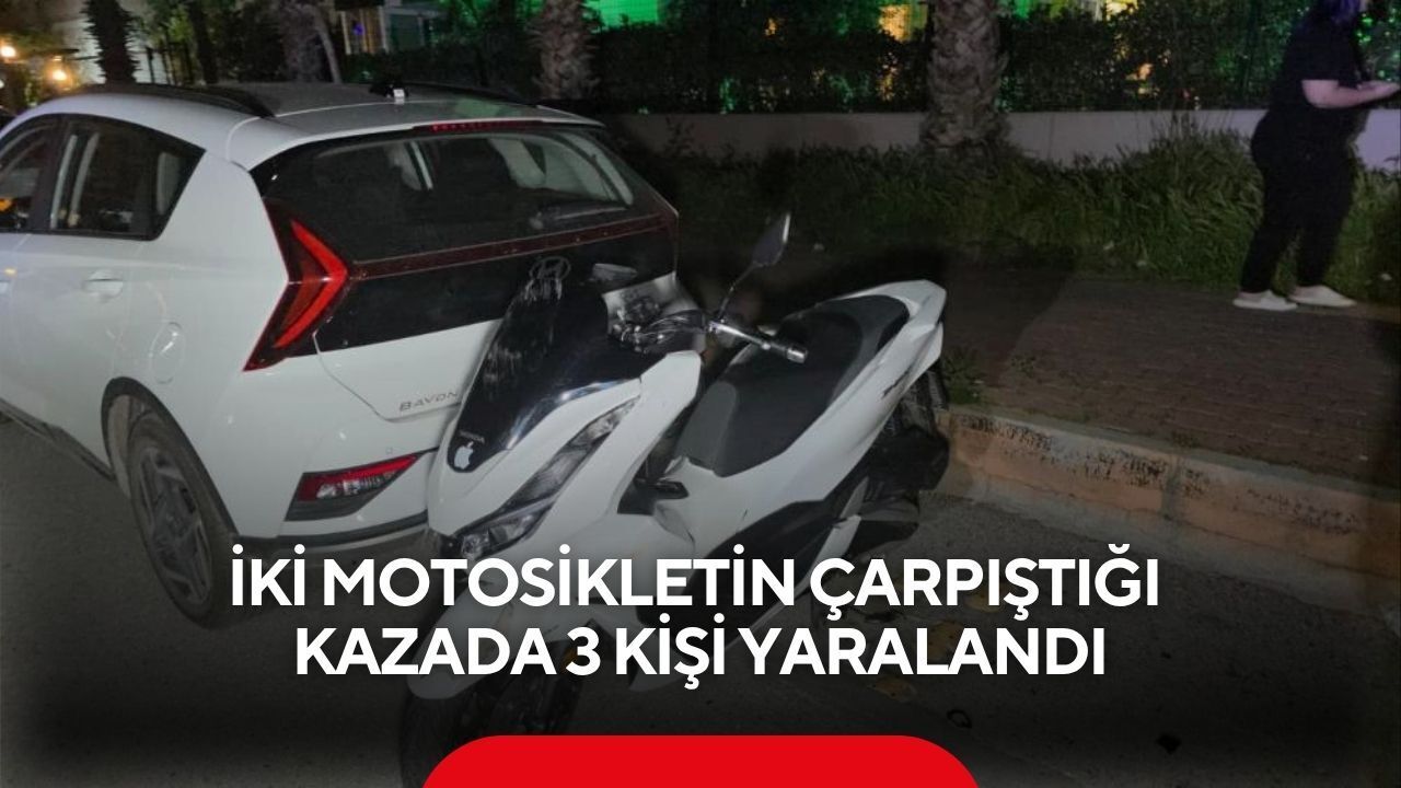 Kaza dün gece saatlerinde, Antalya’nın Konyaaltı ilçesi Liman Mahallesi 39. Sokak ile 38. Sokak kesişiminde meydana geldi. Edinilen bilgilere göre, E.O. idaresindeki 07 BAK 916 plakalı motosiklet ile U.T.'nin kullandığı 07 BB 953 plakalı motosiklet çarpıştı. Kazada sürücüler ve motosikletlerden birinde yolcu olarak bulunan N.B. yaralandı. Kazayı gören vatandaşların ihbarı üzerine olay yerine sağlık ve polis ekipleri sevk edildi. İlk müdahaleleri olay yerinde yapılan yaralılar, ambulanslarla çevredeki hastanelere götürüldü. Yaralıların sağlık durumlarının iyi olduğu öğrenildi.
