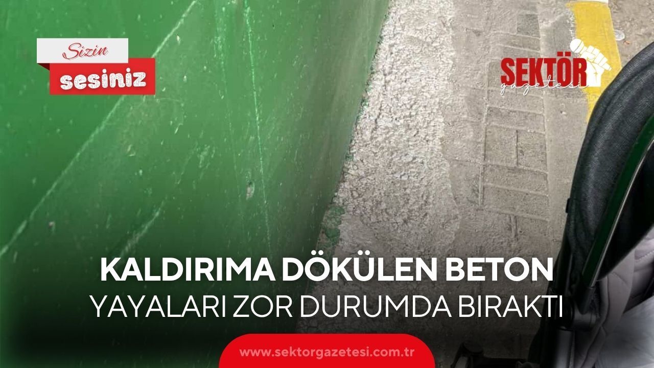 Kaldırımı kapatan beton nedeniyle vatandaşlar yürümekte zorlanırken, özellikle bebek arabasıyla geçmek isteyenler bu alanı kullanamıyor.