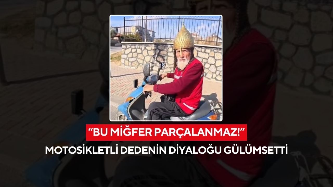 Denizli'de kask yerine miğfer takarak trafiğe çıkan motosikletli dede görenleri hem şaşırttı hem de gülümsetti. Motosikletçi ile yaşlı adam arasında geçen diyalog, sosyal medyada kısa sürede ilgi gördü.