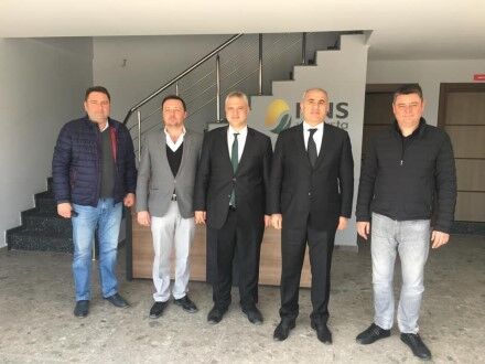 İlçe Tarım ve Orman Müdürü Ali Demir'in eşlik ettiği ziyarette Kaymakam Kılıç, Cem ve Can Sağır'dan firma hakkında bilgi aldı.