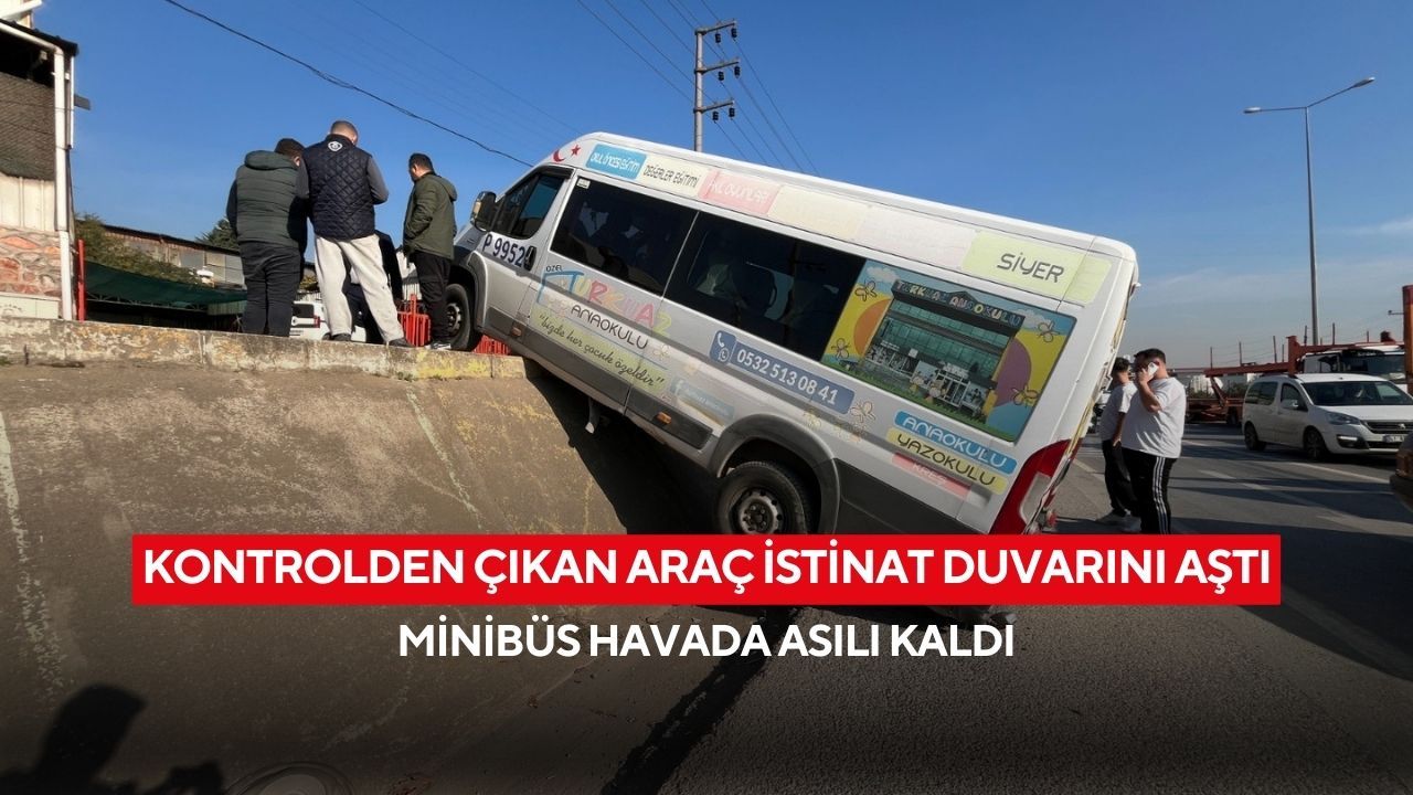 Yaralananın olmadığı kaza nedeniyle bölgeye polis ekipleri sevk edildi. Asılı kalan minibüs, çekici yardımıyla bulunduğu yerden kaldırıldı.