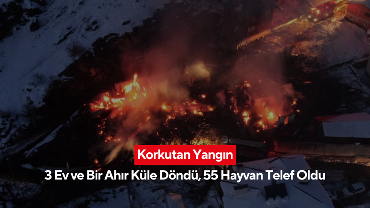 Alevlere teslim olan Çakal'a ait ahırdaki 40 küçükbaş hayvan ile 15 büyükbaş hayvan ve kümesteki tavuklar telef oldu.