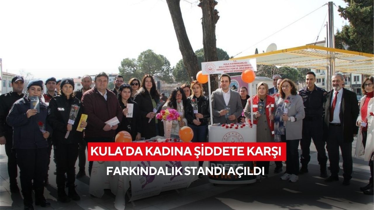 İlçe merkezinde kurulan stantta kadınlara karanfil dağıtılırken, vatandaşlara kadına yönelik şiddetle mücadele konusunda bilgilendirici el ilanları verildi. Kula 80. Yıl Engelsiz Yaşam Bakım ve Rehabilitasyon Merkezi Müdürlüğü tarafından kurulan stantta, kolluk kuvvetlerinin de desteğiyle vatandaşlara kadına yönelik şiddet konusunda bilgilendirme yapıldı.