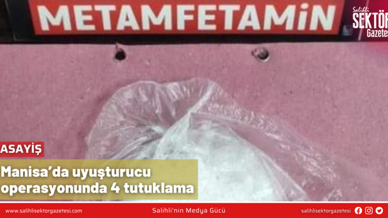 Manisa İl Emniyet Müdürlüğü'ne bağlı Turgutlu Narkotik Suçlarla Mücadele Grup Amirliği ekipleri, ilçede uyuşturucu veya uyarıcı madde ticareti yapan, nakleden ve kullanan şahıslara yönelik çalışmalarda durdurdukları bir araçta ve şahısların ikametlerinde yaptıkları aramada 56 gram metamfetamin, 3 gram esrar, 4 adet sentetik ecza hap, 1 adet 7,65 mm ruhsatsız tabanca, 7 adet 7,65 mm fişek ve uyuşturucu madde paketlemek için kullanılan alüminyum folyo ele geçirdi. Olayla ilgili gözaltına alınan 5 şüpheliden G.Ö. (28), R.B. (30), N.Ö. (31) ve H.Y. (25) çıkarıldıkları mahkemece tutuklanarak cezaevine gönderildi.