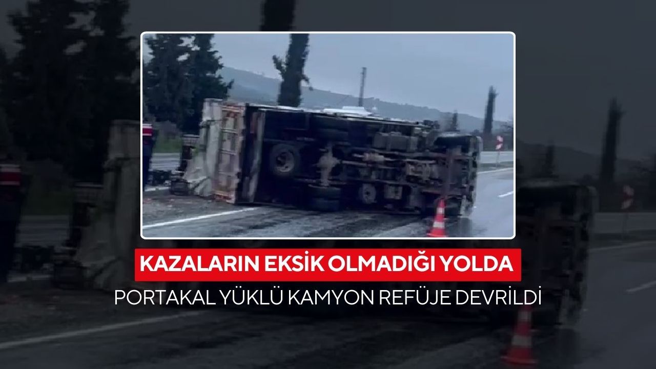 Kaza nedeniyle karayolunda trafik bir süre kontrollü olarak sağlanırken, devrilen kamyonun kaldırılması ve yola saçılan portakalların temizlenmesinin ardından ulaşım normale döndü.