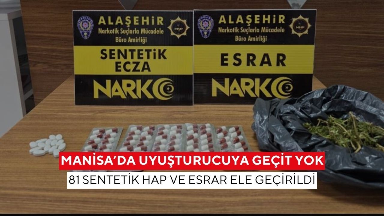 Alaşehir Narkotik Suçlarla Mücadele Büro Amirliği ekiplerince Beşeylül Mahallesi’nde gerçekleştirilen operasyonda, M.T. (26) isimli şüphelinin üzerinde ve ikametinde yapılan aramada 81 adet sentetik ecza hapı ile 36,41 gram esrar ele geçirildi.