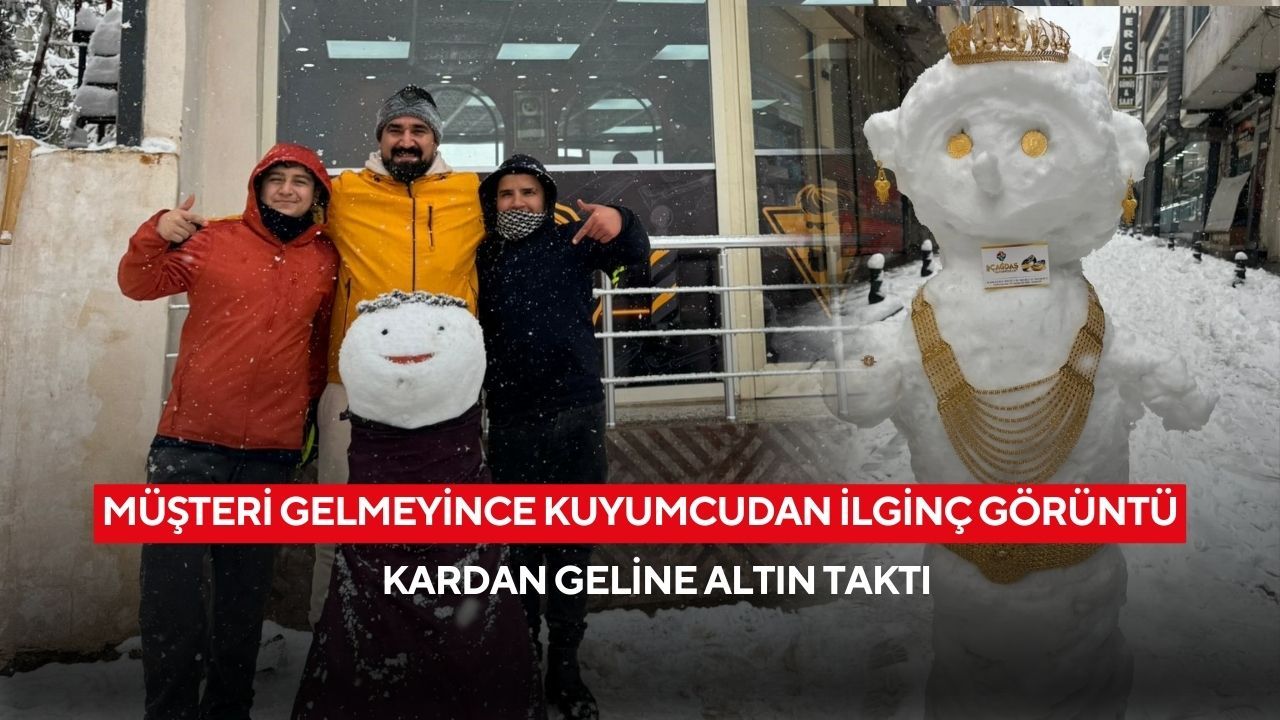 Nizip ilçesinde ise bir kuyumcu, kar yağışı nedeniyle müşteri gelmeyince iş yerinin önüne yaptığı kardan gelini altınlarla süsledi. Boynuna bilezikler ve kolyeler takılan kardan gelin vatandaşların ilgisini çekerken ortaya renkli görüntüler çıktı.
