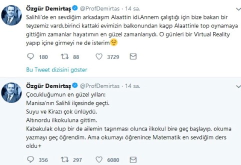 Sabancı Üniversitesi Finans Kürsü Başkanı olan ve çocukluk yıllarının bir bölümünü Salihli'de yaşayan ünlü Profesör Özgür Demirtaş, daha önce de Salihli anıları ile ilgili bir tweet atmıştı.