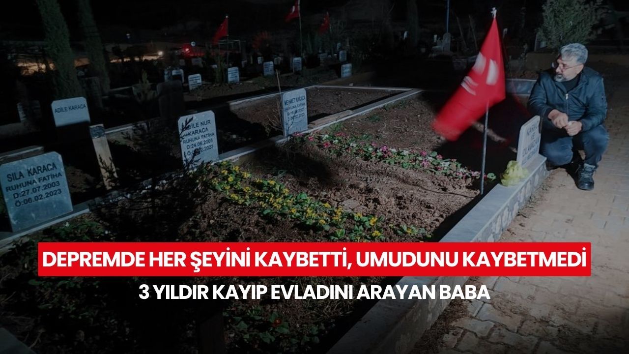 Kahramanmaraş merkezli 6 Şubat depremlerinde, Gaziantep'in İslahiye ilçesinde tüm ailesini kaybeden bir kişi, saatler 04.17'yi gösterdiğinde Adana'daki aile mezarlığında gözyaşlarına boğuldu. Deprem sırasında işte olduğu için hayatta kalan baba, aradan geçen 3 yıla rağmen enkazdan cenazesi çıkarılamayan 13 yaşındaki kızını umutla aramayı sürdürüyor.