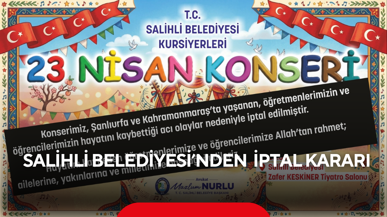 Bu kapsamda Salihli Belediyesi de 23 Nisan etkinlik programında yer alan ve kursiyerler tarafından sahnelenecek konseri iptal etti.