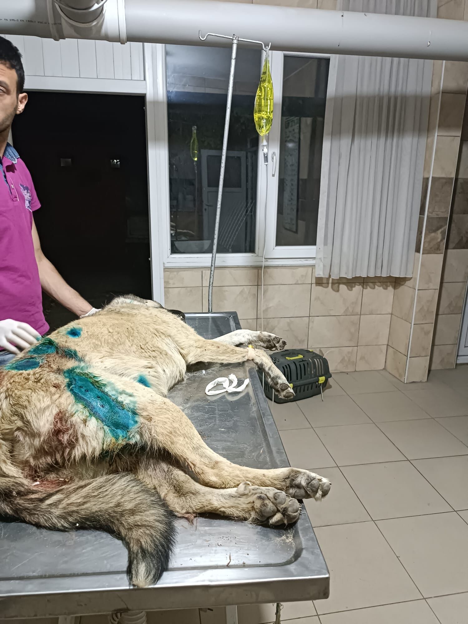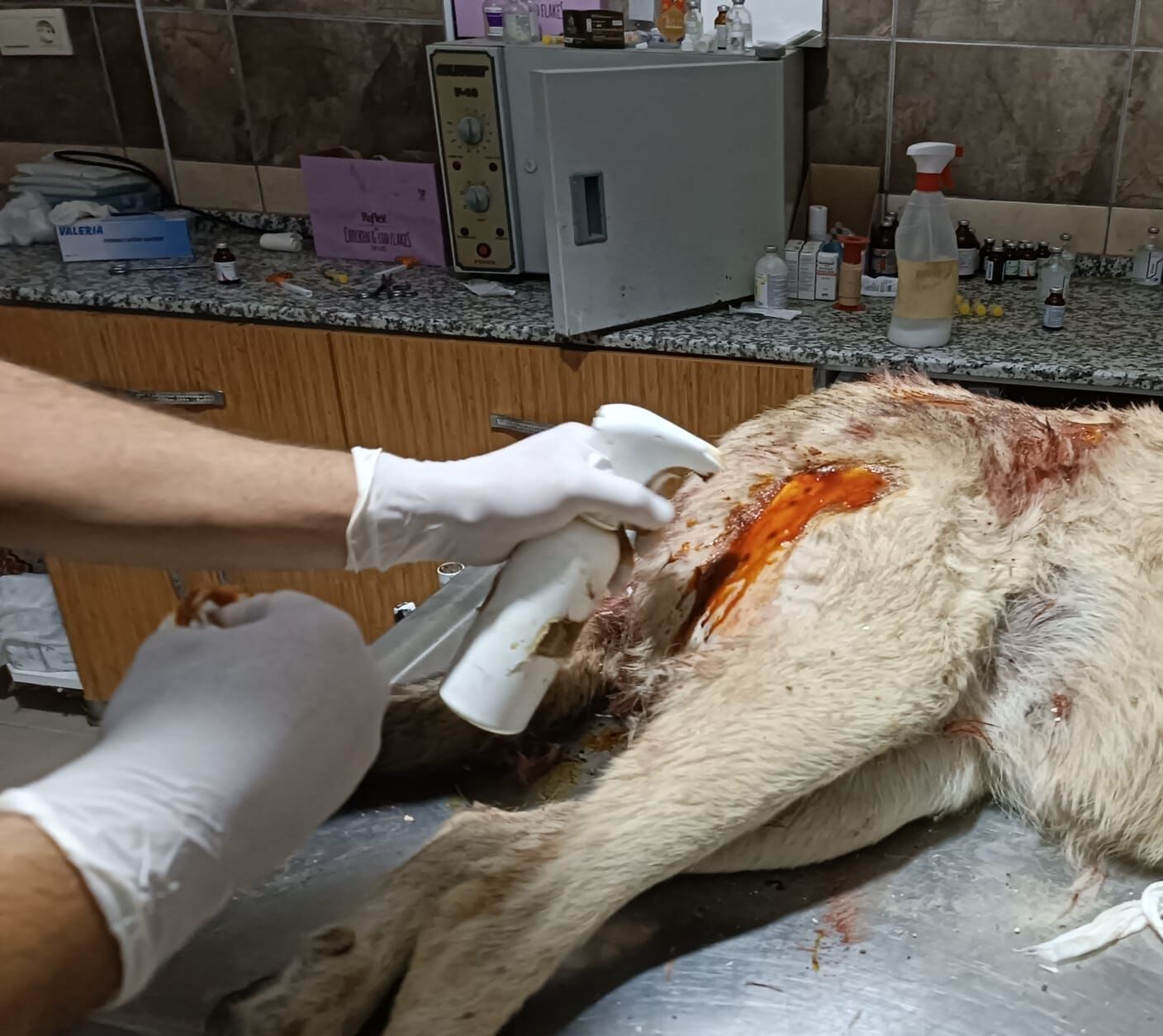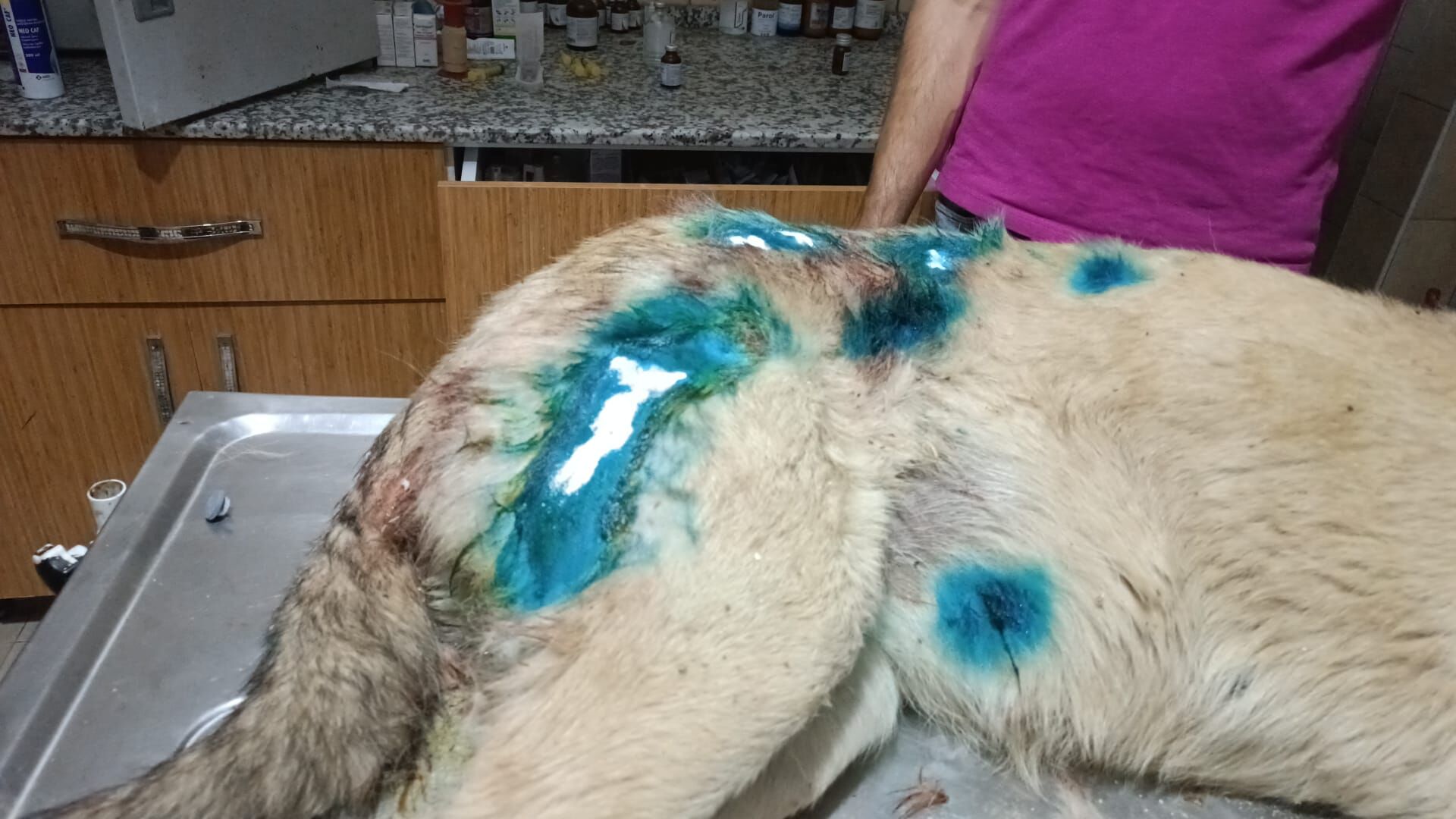 Ateş sonucu sokak köpeğinin sırtı kısmına 10'dan fazla saçma isabet etti.