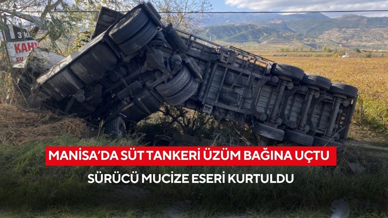 Alaşehir ilçesinde meydana gelen trafik kazasında süt tankeri şarampole devrilerek üzüm bağlarına uçtu.