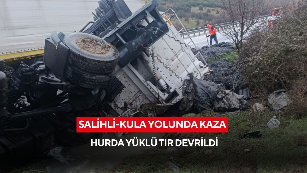 Kaza, İzmir-Ankara D300 Karayolu Kovukdere mevkiinde meydana geldi. Edinilen bilgiye göre, sürücüsünün direksiyon hakimiyetini kaybettiği hurda yüklü tır kontrolden çıkarak devrildi.