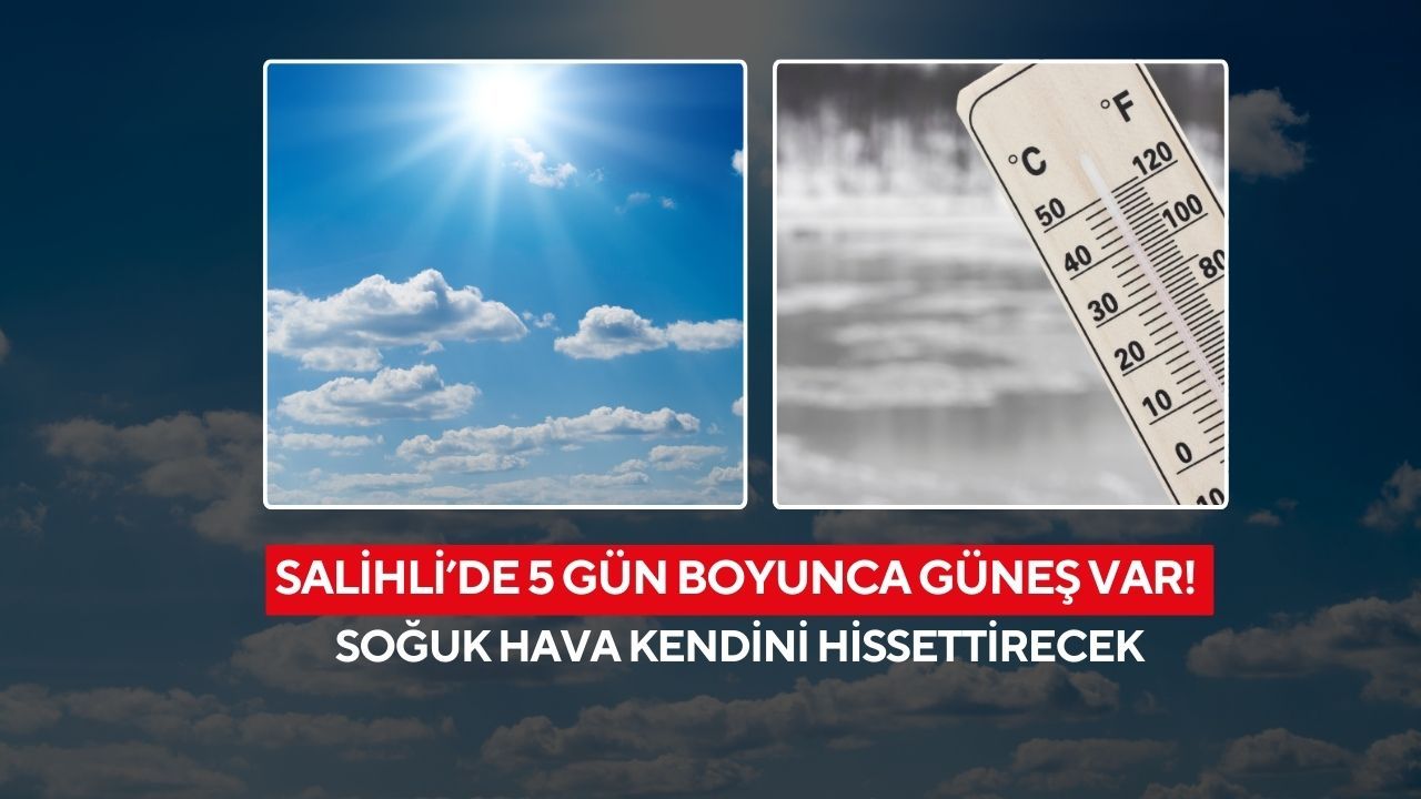 Meteoroloji Genel Müdürlüğü’nün son tahminlerine göre, Salihli’de hafta boyunca hava güneşli ve az bulutlu seyredecek. Kentte önümüzdeki 5 günlük periyotta yağış görünmüyor.