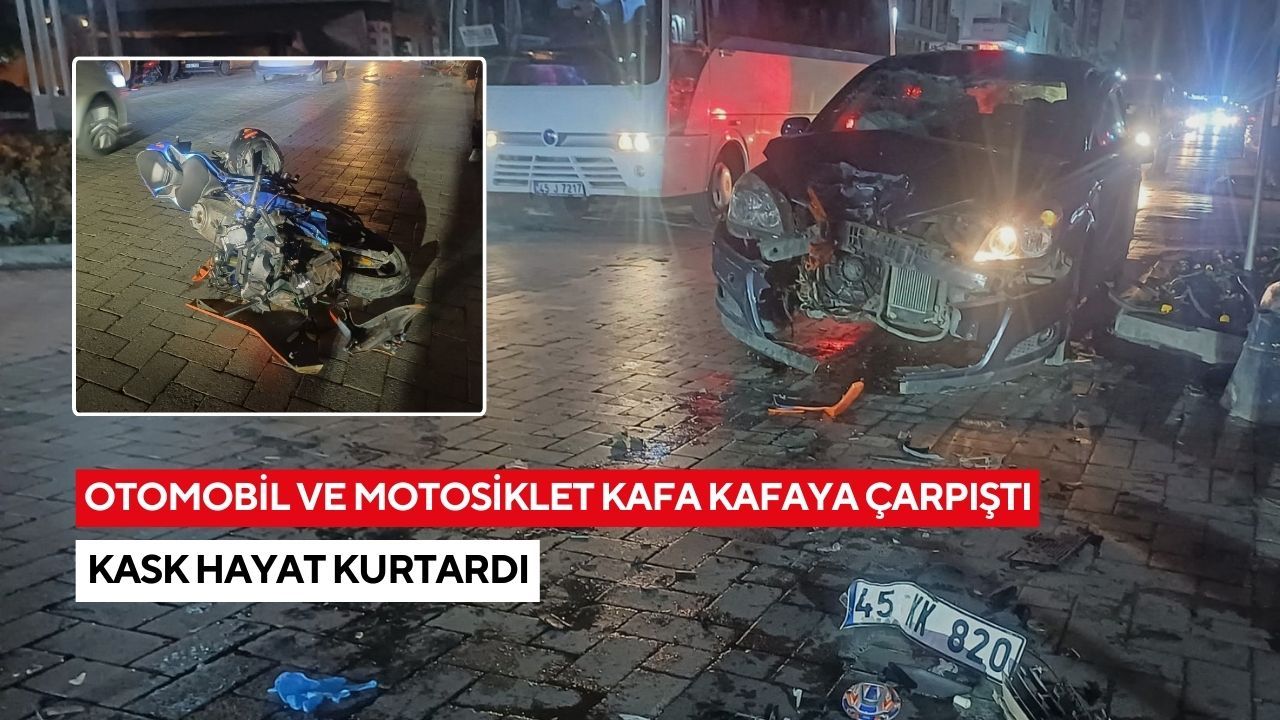 Kaza, Şüheda Caddesi üzerinde meydana geldi. Edinilen bilgiye göre, F.F. (44) yönetimindeki 45 KK 820 plakalı otomobil ile karşı yönden gelen T.C. (19) idaresindeki 45 AVK 334 plakalı motosiklet henüz belirlenemeyen bir nedenle çarpıştı. Çarpışmanın şiddetiyle motosiklet sürücüsü yola savrularak yaralandı. Sürücünün kafasındaki kaskın ciddi bir yaralanmayı önlediği öğrenildi.