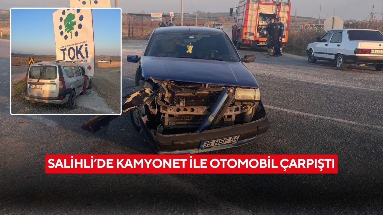 Kaza, Salihli-Köprübaşı yolu Taytan Mahallesi mevkiinde meydana geldi. Edinilen bilgilere göre, A.Ö. (72) yönetimindeki 35 UGS 09 plakalı kamyonet ile A.G. (26) idaresindeki 35 HSF 54 plakalı otomobil henüz bilinmeyen bir nedenle çarpıştı. Çarpışmanın etkisiyle kamyonet yol kenarında bulunan TOKİ tabelalarına çarparak durabildi.