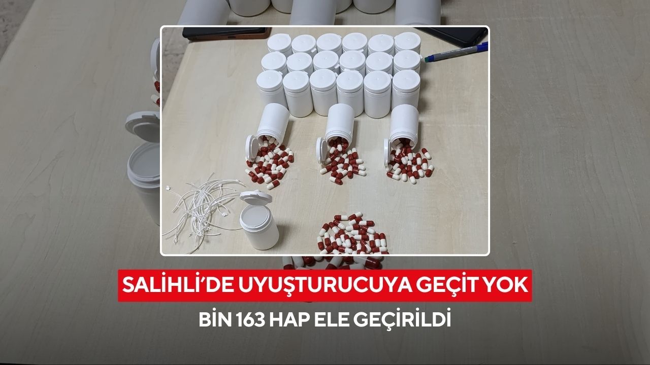 Salihli’de huzur ve güvenliğin sağlanmasına yönelik çalışmalarını kararlılıkla sürdüren İlçe Emniyet Müdürlüğü ekipleri, Bülent Ecevit Köprülü Kavşak civarında durumundan şüphelendikleri U.Y. ve B.Y.’yi durdurarak arama yaptı. Yapılan aramada, şüphelilerin yanlarında bulunan çanta içerisindeki siyah poşette bin 163 adet uyuşturucu hap ele geçirildi.