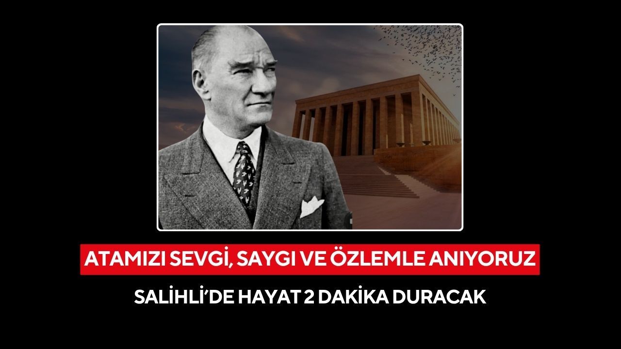 Türkiye Cumhuriyeti’nin kurucusu Büyük Önder Mustafa Kemal Atatürk, vefatının 87.yılında Salihli’de Atatürk Anıtı’nda yarın saat 08.50’de başlayacak olan anma programı ile anılacak. Anma programı Kaymakamlık makamı, Garnizon Komutanlığı, Belediye Başkanlığı ile diğer kurum ve kuruluşların çelenklerin sunulması ile başlarken, ardından 2 dakikalık saygı duruşu ve İstiklal Marşı okunacak.