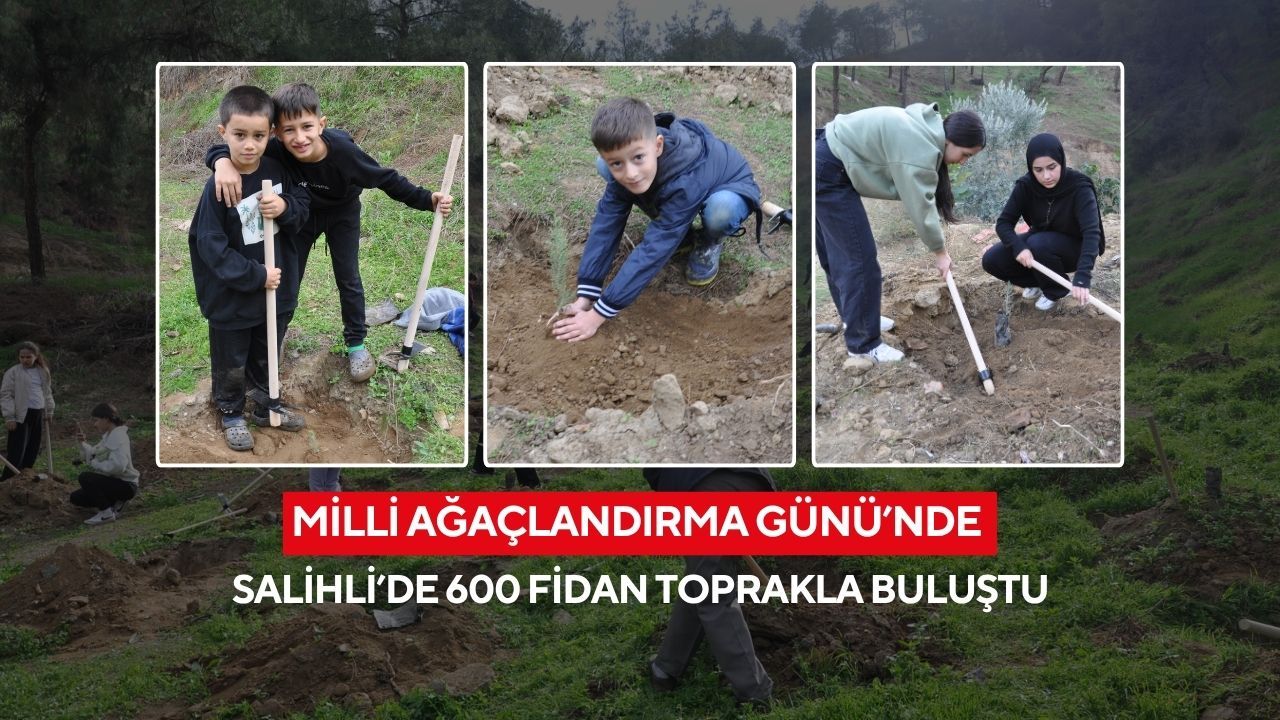 Salihli’nin Sağlık Mahallesi mevkiinde, 11 Kasım Milli Ağaçlandırma Günü kapsamında düzenlenen “Yeşil Vatan” etkinliğinde 600 çam ve selvi fidanı toprakla buluştu. Salihli Kaymakamlığı koordinasyonunda düzenlenen etkinlikte öğrenciler, öğretmenler, veliler ve protokol üyeleri hep birlikte fidan dikti, ardından fidanlara can suyu verdi.