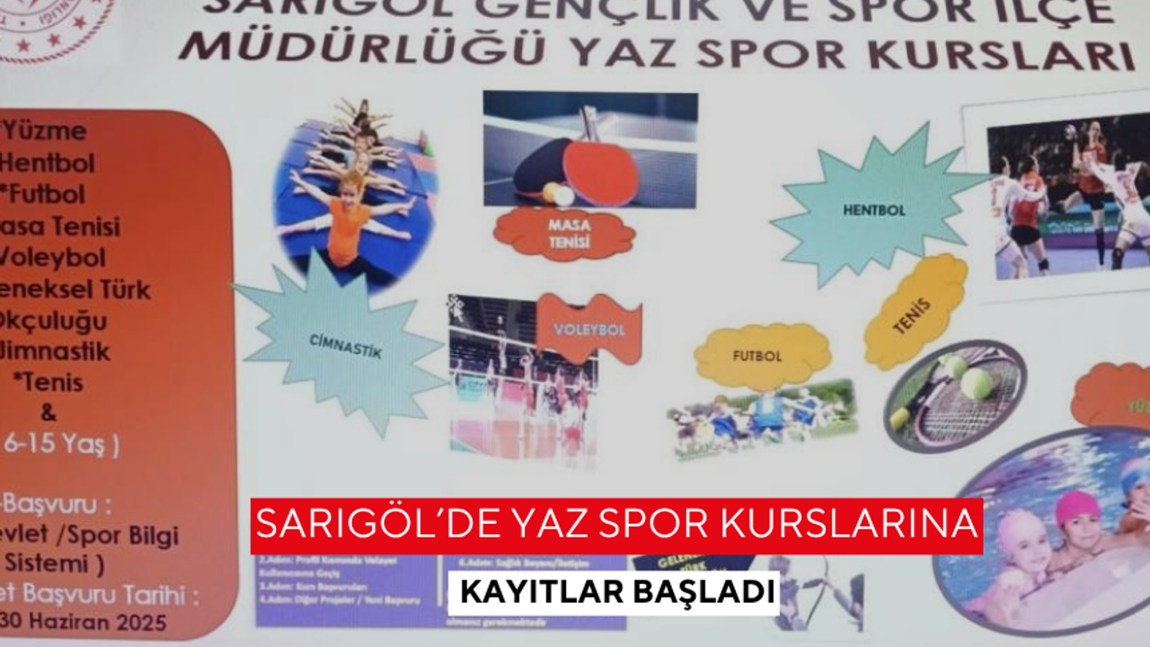 Sarıgöl Gençlik ve Spor İlçe Müdürü Gökhan Yıldırım yaptığı açıklamada, "Sarıgöl Gençlik ve Spor İlçe Müdürlüğü olarak, yaz boyunca düzenleyeceğimiz hentbol, voleybol, yüzme, cimnastik, tenis, masa tenisi, geleneksel Türk okçuluğu ve futbol kurslarına tüm çocuk ve gençlerimizi davet ediyoruz" dedi.