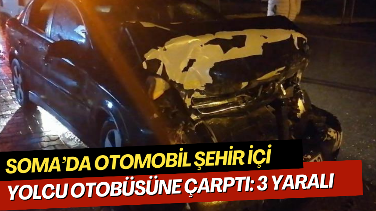 Kaza, Soma ilçesine bağlı Turgutalp Mahallesi Bergama Caddesi'nde otobüs durağında meydana geldi. Edinilen bilgilere göre, şehir içi yolcu otobüsü durakta yolcu indirdiği esnada arkadan gelen Uğur K. idaresindeki 45 AGR 133 plakalı otomobil otobüse çarptı. Çevredekilerin haber vermesi üzerine bölgeye sağlık ve trafik ekipleri sevk edildi. Kazada otomobil sürücüsü Uğur K. ile otobüste bulunan yolcular Aysel K. ve Cemal K. yaralandı. Yaralılar sağlık ekiplerince hastaneye kaldırıldı. Yaralıların sağlık durumlarının iyi olduğu belirtilirken, kaza ile ilgili soruşturma başlatıldı.