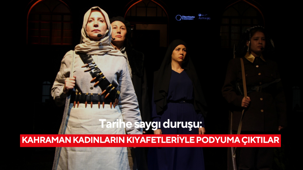 Tarihe isimlerini altın harflerle yazdıran Asiye Remzi, Kara Fatma, Çete Emir Ayşe gibi kadın kahramanların çeşitli kaynaklardan araştırılarak hazırlanan kıyafetlerini oluşturan 15 usta öğretici mankenlik yaptıkları defilede performanslarıyla da göz doldurdu.