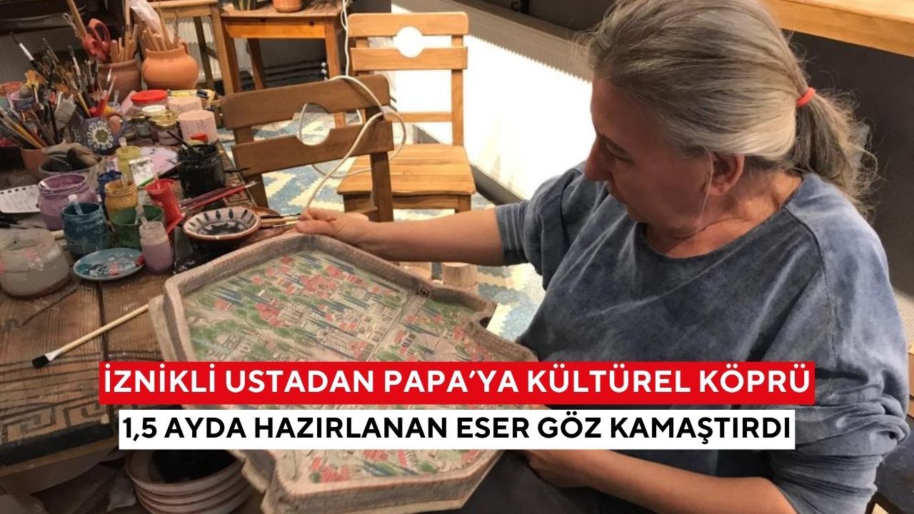 Eser, 28 Kasım'daki tarihi buluşmada İznik'ten Vatikan'a uzanan bir dostluk ve kültürel miras köprüsü olacak. Kültür ve Turizm Bakanlığı'nın ‘Somut Olmayan Kültürel Miras Taşıyıcısı' unvanına sahip Künen'in hazırladığı minyatür çalışmada, kentin simgesi hâline gelmiş tarihi yapılar, İznik surları, anıtsal kapılar ve kentin kültürel dokusunu temsil eden önemli noktalar yer alıyor. El emeği göz nuru bu özel eser, geleneksel İznik çini sanatının modern bir yorumla aktarıldığı nadide bir örnek.