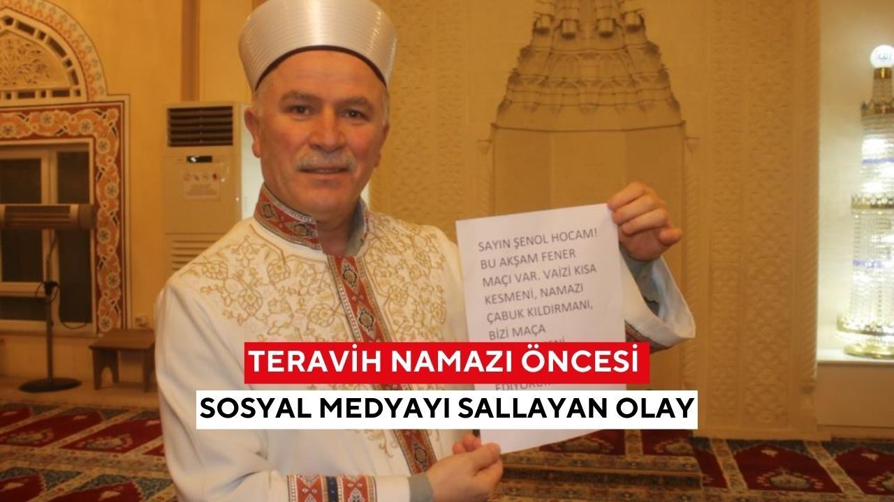 Giresun’un Görele ilçesinde geçtiğimiz pazartesi günü teravih namazı öncesi cami imamına bırakılan "Bu akşam Fener maçı var, vaazı kısa tut, namazı çabuk kıldır" yazılı not sosyal medyada gündem oldu. Notu dikkate alan imam, vaazı kısa tutup, ilahileri azaltarak gençlerin maça yetişmesini sağladı.