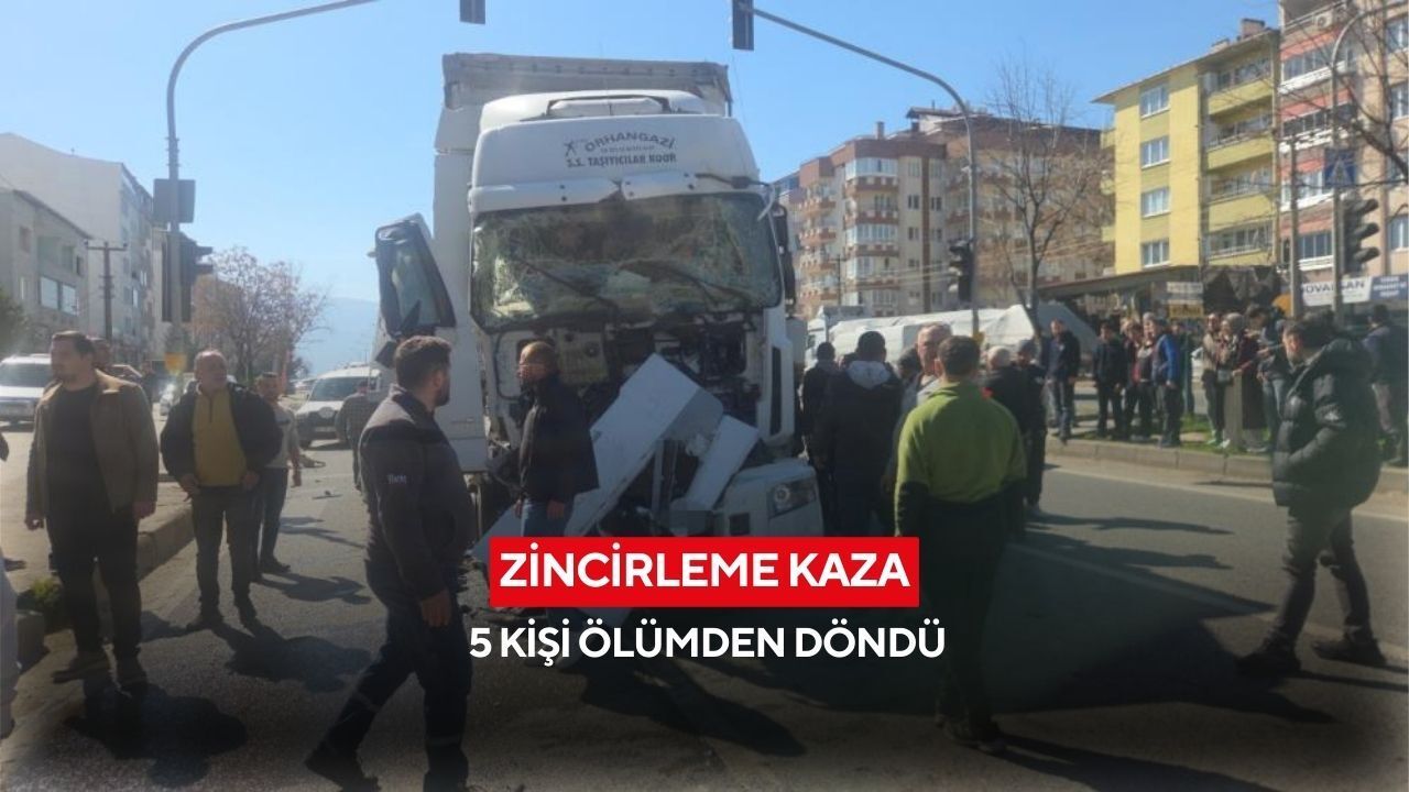 Kaza, Bursa'da Orhangazi'de Yalova-Bursa kara yolu şehir merkezi geçişinde meydana geldi. Edinilen bilgilere göre, Bursa'dan Yalova yönüne seyreden Mustafa Can (64) yönetimindeki 16 PAC 01 plakalı tır, eski kaymakamlık lojmanı kavşağına geldiği sırada trafikte ani yavaşlama yaşanması üzerine önce Zakaria Alhamo Alshikho (43) idaresindeki 16 MT 056 plakalı motosiklete, ardından ışıklarda bekleyen Durmuş Coşkun (50) yönetimindeki 50 FL 658 plakalı kamyona çarptı. Çarpmanın etkisiyle savrularak tırın altında kalmaktan son anda kurtulan motosikletteki Suriye uyruklu çift ile 12 yaşındaki oğulları yaralandı. İhbar üzerine olay yerine çok sayıda ambulans ve itfaiye ekibi sevk edildi. Kazada araçta sıkışan tır sürücüsü Mustafa Can itfaiye ekiplerinin yaklaşık yarım saat süren çalışmasının ardından bulunduğu yerden çıkarıldı. Yaralılar olay yerine gelen ambulanslarla Orhangazi Devlet Hastanesi'ne kaldırıldı.