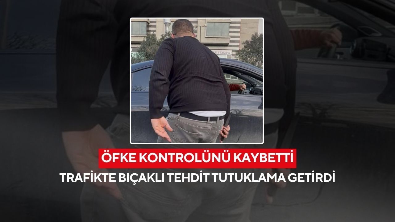Tartışmanın kısa sürede büyüyerek kavgaya dönüştüğü olayda, minibüs şoförü elinde bıçak ile araç sürücüsüne tehdit ve hakaretler savurdu. O anlar, trafikteki diğer sürücüler tarafından anbean kayda alındı. İhbar üzerine olay yerine gelen polis ekipleri, minibüs şoförü G.B.'yi (37) gözaltına aldı.