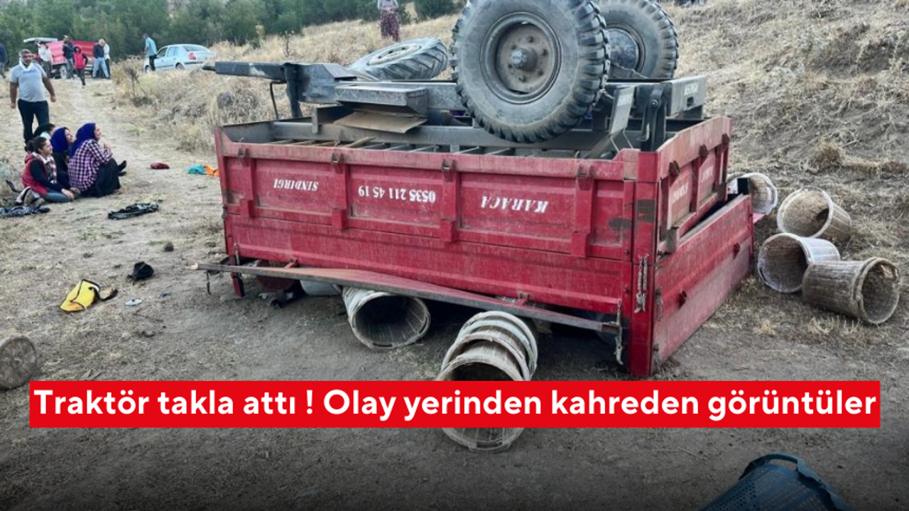 Traktör takla attı ! Olay yerinden kahreden görüntüler
